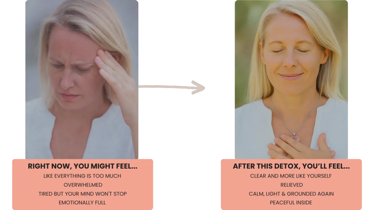 Emotional Detox is the simple way that took me from feeling overwhelmed, anxious, and heavy — just trying to get through another day - to feeling calm, grounded, and deeply connected with myself again.